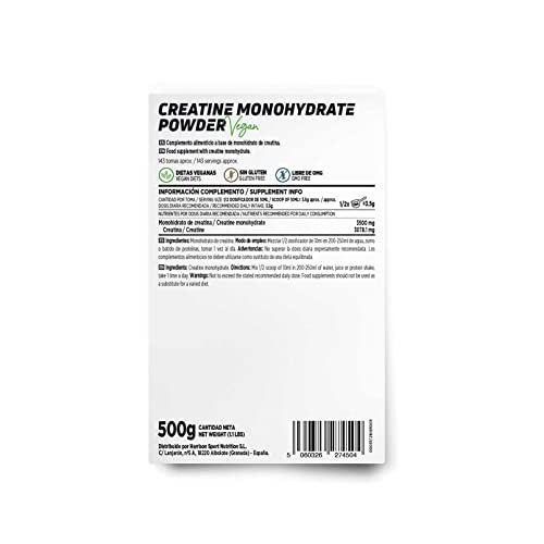 Specification: Creatina Monohidrato Micronizada en Polvo de HSN | Aumenta tu Rendimiento Deportivo, tu Energía y tu Masa Muscular, Retrasa la fatiga | Vegano, Sin Gluten, Sin Lactosa, 500 gr…