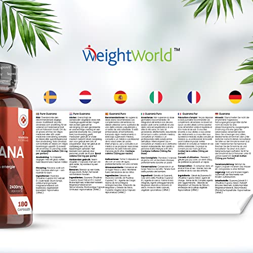 Specification: Guarana cafeïne capsules – 4800mg – 180 vegan capsules voor 3 maanden voorraad – Rijke bron aan cafeïne – Geproduceerd in het Verenigd Koninkrijk – WeightWorld