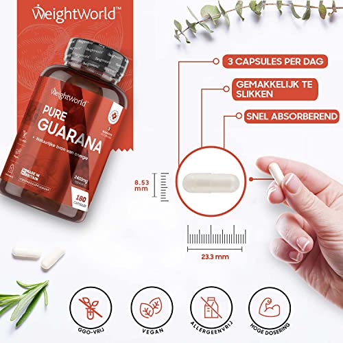Guarana cafeïne capsules – 4800mg – 180 vegan capsules voor 3 maanden voorraad – Rijke bron aan cafeïne – Geproduceerd in het Verenigd Koninkrijk – WeightWorld