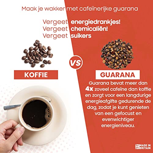 Natuurlijke bron van energie – Het guarana extract in onze capsules is puur plantaardig en bevat van nature cafeïne en vitamine C. Deze natuurlijke capsules zijn populair voor mannen en vrouwen die op zoek zijn naar een extra duwtje in de rug.