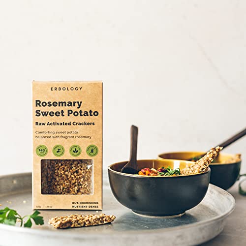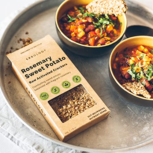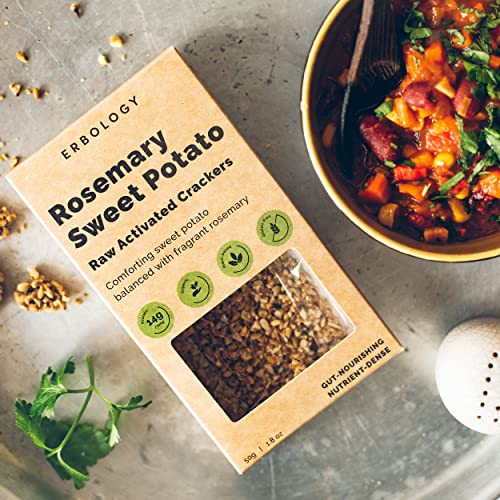100% biologische glutenvrije rozemarijn zoete aardappelcrackers 3 x 50g – rauw, veganistisch en geschikt voor coeliakie – ondersteunt darmgezondheid – met actieve zaden, gezonde vetten en eiwitten – kleine partij