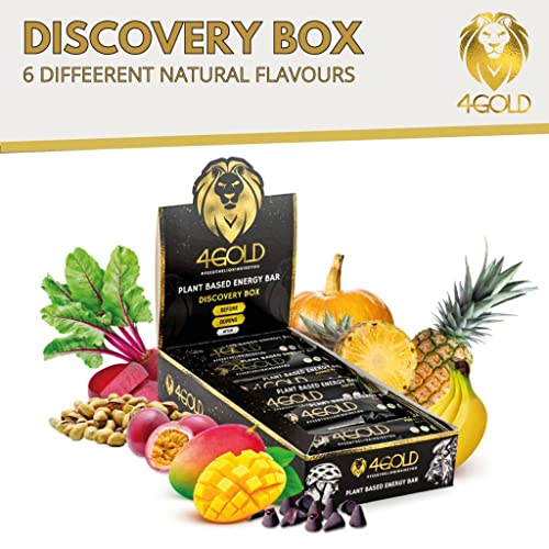 4Gold Vegan Energy Bars, Endurance Bars with Carbohydrates, Vegan Protein Bars, Natural Power Bars – Healthy Snacks for Added Endurance, 18 Bars (52g), Discovery