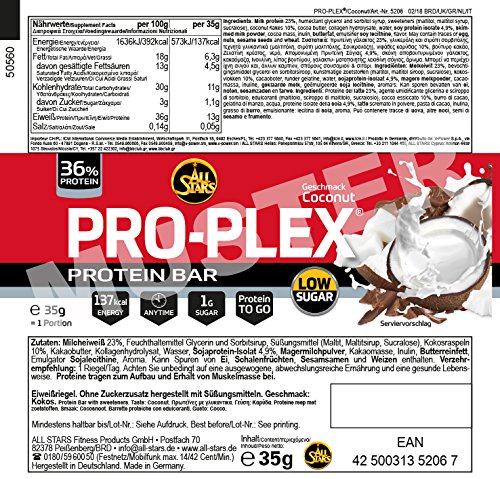 Specification: All Stars Pro-Plex Bar 32x35g Coconut