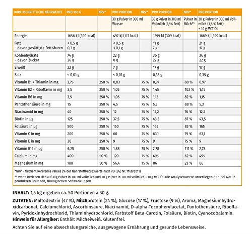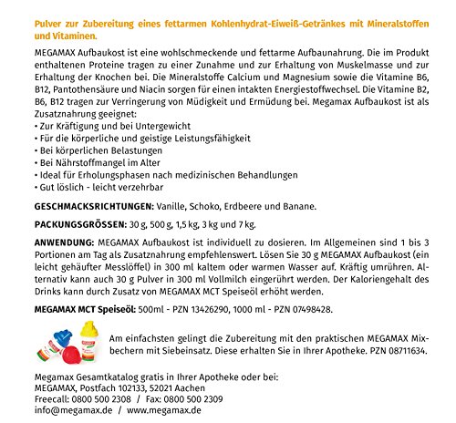 Specification: MEGAMAX Fit & Vital Aufbaukost Kohlenhydrat-Eiweiß-Konzentrat Pulver Bananen-Geschmack, 1,5 kg kg Poeder