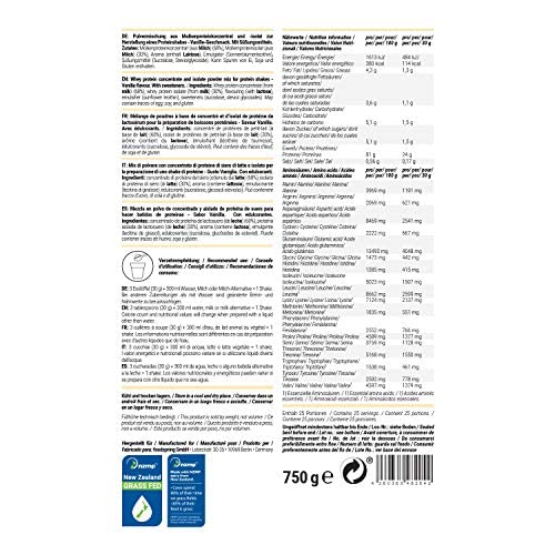 Specification: foodspring Whey Protein Powder Vanilla – Met 24g eiwit voor spieropbouw, perfecte oplosbaarheid, uit weidemelk, rijk aan BCAA’s & EAAs – 750g