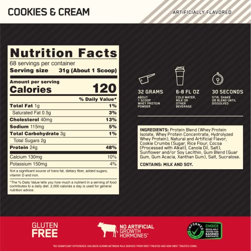 Specification: Optimum Nutrition Gold Standard 100% Whey Eiwitpoeder, Cookies and Cream, 2,27kg, 71 Porties