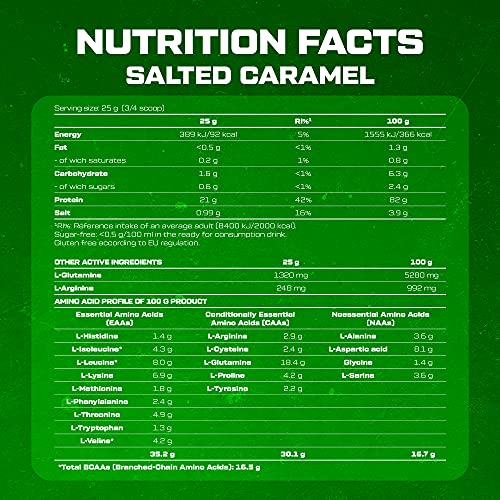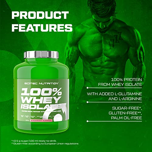 Specification: Scitec Nutrition 100% Whey Isolate, Flavored Drink Powder with Whey Protein Isolate, L-Glutamine, L-Arginine and Sweeteners, Sugar-free, Gluten-free and Palm Oil-free, 2 kg, Salted caramel