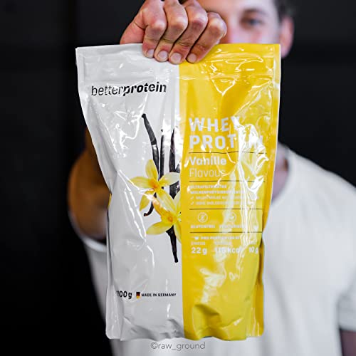 Whey Proteïne, vanille, 1 kg, geproduceerd in Duitsland van regionale melk, BetterProtein®, eiwitpoeder voor spieropbouw en afvallen, zak