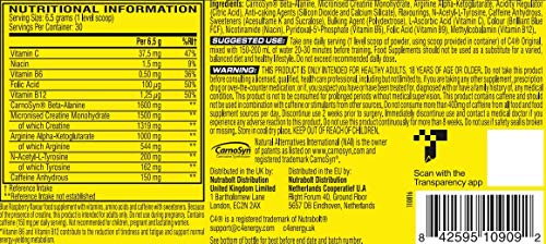 Een portie biedt 1600mg Beta Alanine, 1500mg Creatine en 1000mg Arginine Alpha-Ketoglutarate