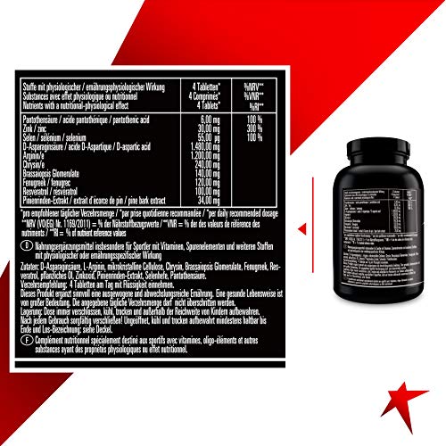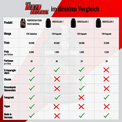 Specification: Testo Naturel | Hoge dosis met D-asparaginezuur, chrysin, fenugreek enz. | Grondstoffen in geteste farmaceutische kwaliteit | 120 tabletten | IFS-gecertificeerde Duitse productie