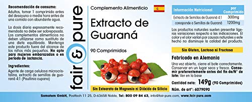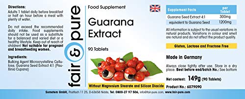 Specification: Fair & Pure® – Guarana extract 300mg (4:1) van 1200mg guarana – vegan – 90 guarana tabletten – bevat coffeïne