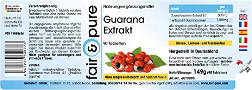 Voor uw gezondheid: Guarana extract 300mg, 4:1 extract van 1200mg guarana, vegan, 90 tabletten – Het product is glutenvrij, fructosevrij en lactosevrij en vrij van magnesiumstearaat, siliciumdioxide, kleur- en smaakstoffen en conserveringsmiddelen